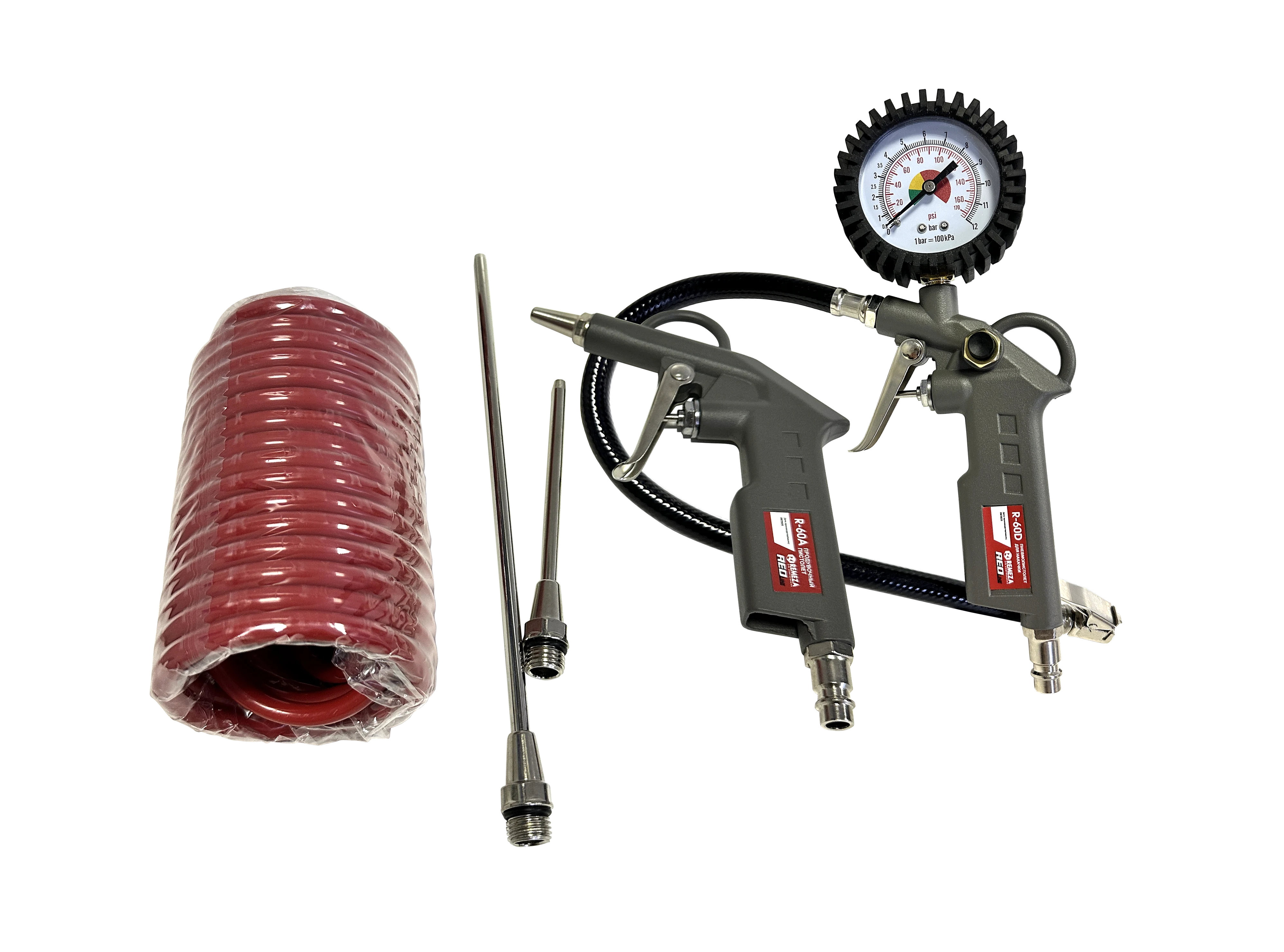 - пневмопистолет для накачки шин с манометром R-60D, с механическим манометром, длина шланга 400 мм;
