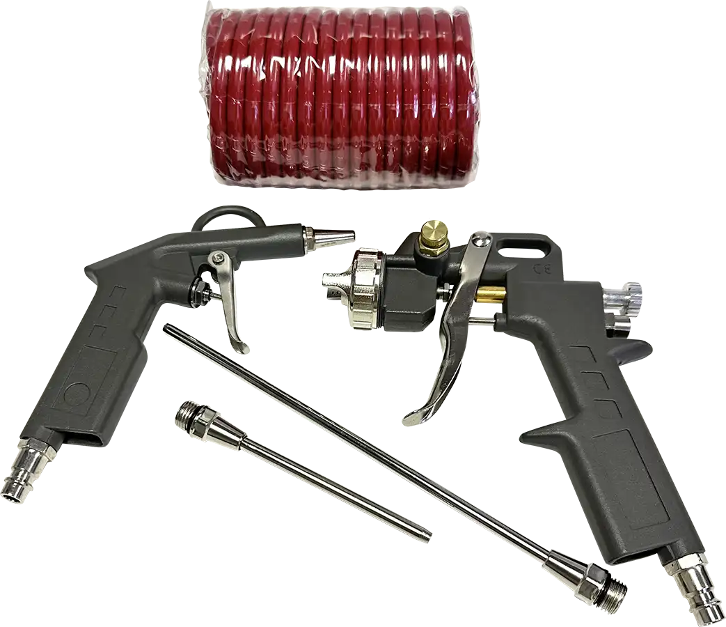 Все инструменты в наборах имеют быстросъёмное подключение, благодаря чему к спиральному шлангу можно быстро подключить любой инструмент и приступить к выполнению рабочей операции.